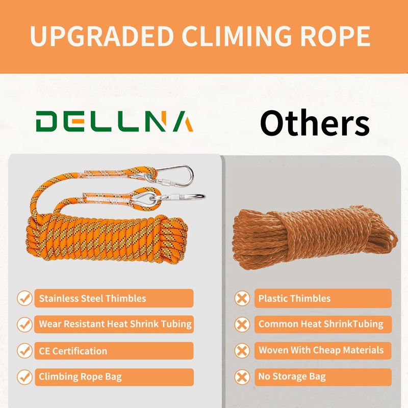 - Professional Design - The vibrant color and sleek design of our climbing rope not only make it stand out but also enhance visibility and safety while climbing. It’s easy to spot and identify in any terrain, making it a great addition to your gear.