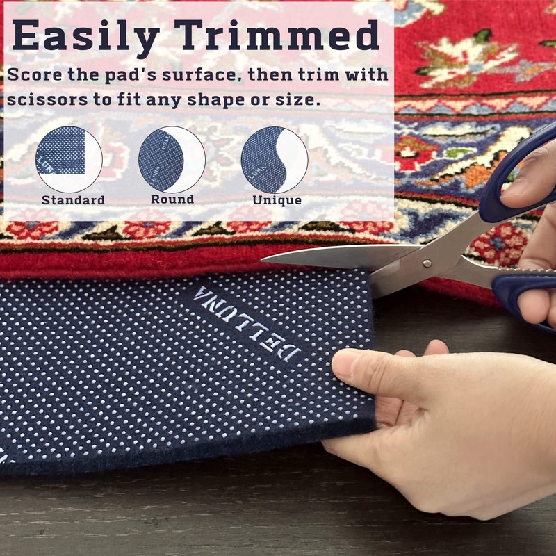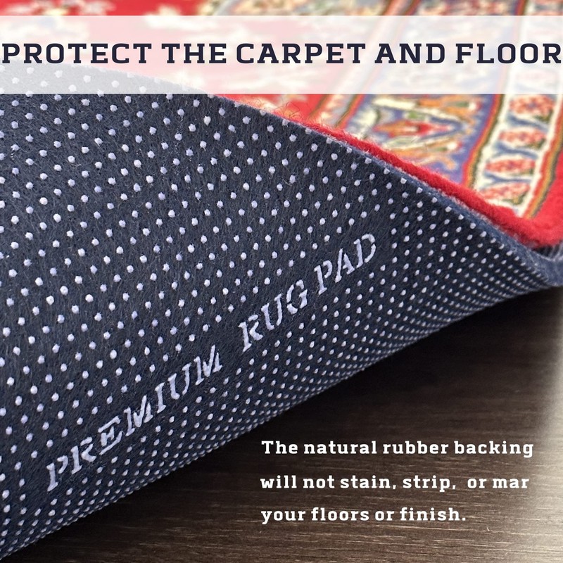 - 【DOUBLE-SIDED ANTI-SLIP RUG MAT】 The DELLUNA RUG PAD team developed the 100% new felt fiber+ double-sided rubber non-slip rug pads, providing twice the grip, holding the carpet firmly in place, and stopping the rug from moving. The natural rubber backing is ideal for added grip on hard surface floorings, such as hardwood, laminate, vinyl, and tile. Prevent slipping and sliding from everyday use or when children or pets play with it.