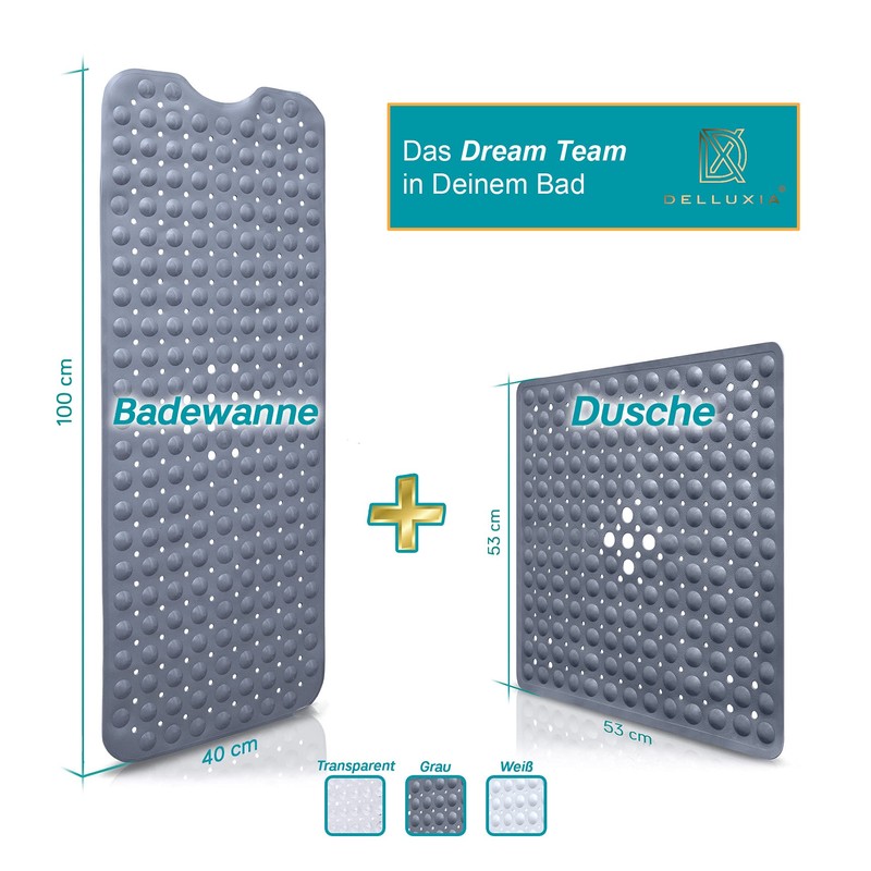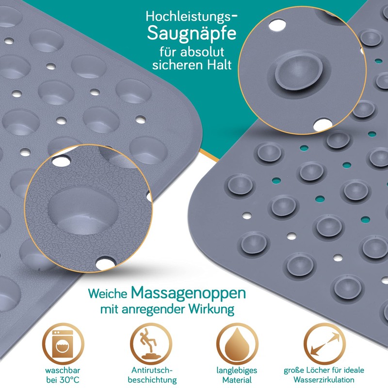 - End with the slip part. - With a timeless design, the shower mat fits in all shower trays and is an absolute all-rounder. Thanks to the special non-slip coating and countless suction cups on the underside, you have a secure hold at all times with the non-slip bath mat.