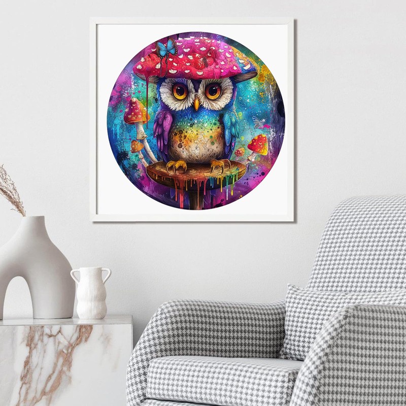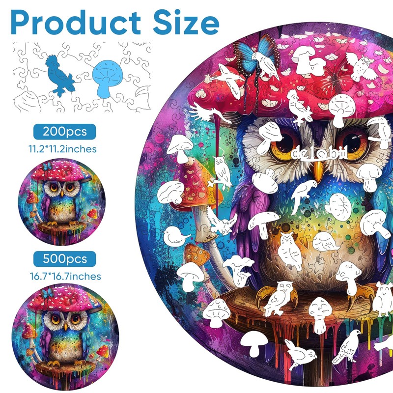 delobil Wooden Puzzles for Adults, Owl & Mushroom Wooden Puzzles 200 Pieces, Unique Shaped Bird Jigsaw Puzzles, Birthday Creative Gifts Fun Challenging Family Puzzle Games, 11.2x11.2 Inch, Medium