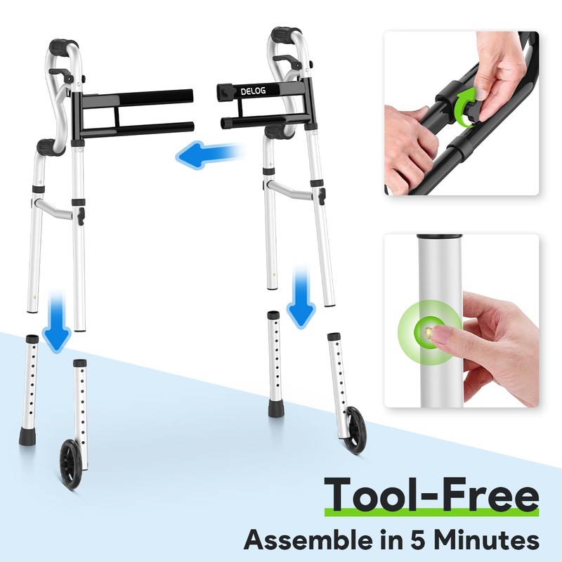 Delog Narrow Folding Walker for Seniors, 3 in 1 Folding Walker with 5” Front Wheels Width Adjustable Compact Standard Walker Support Up to 350lbs, FSA/HSA Eligible