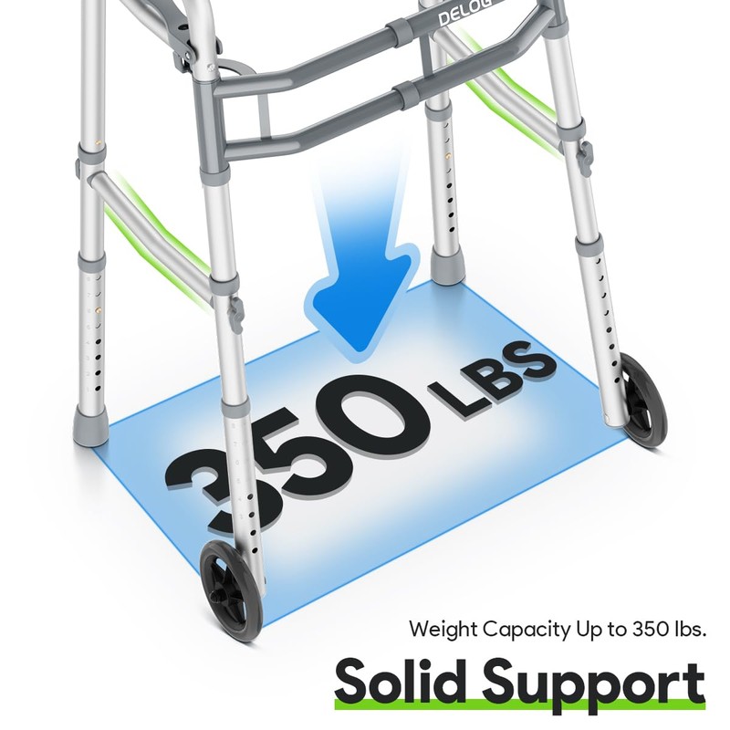 - Durable And Lightweight: Delog walkers for seniors with wheels, The pole sickness reaches to 1.2 mm, supporting users weight of up to 350lbs and it is just only 6lbs.