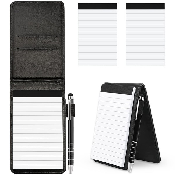 Delsen 4 Pieces Mini Notepad Holder Set A7 Holder Small Notepad Mini Pocket Notebook PU Leather Notebook with Metal Pen and Replacement Notepads for Outdoor Activities