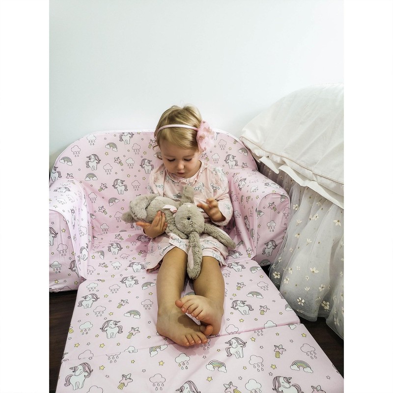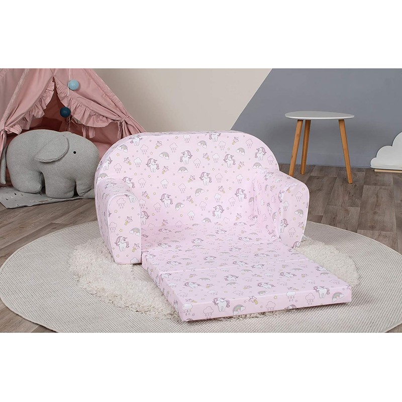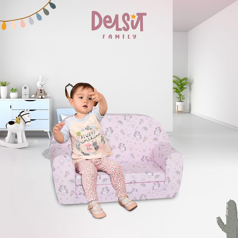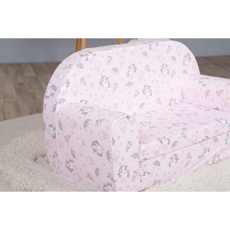 Delsit Toddler Couch & Kids Sofa - European Made Children's 2 in 1 Flip Open Foam Double Sofa - Kids Folding Sofa, Toddler Sofa Bed - Comfy fold Out Lounge (Unicorns and Rainbows Pink)