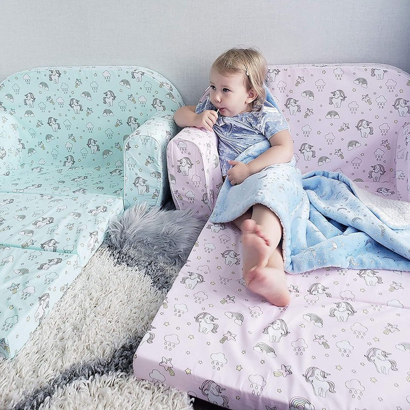 - COTTON - This toddler sofa chair is comfy and cozy with 100% cotton fabric. All material is OEKO-TEX STANDARD 100 Certified. Baby couch comes in variety of patterns that will complement any playroom furniture and décor. Great for Nursarys, playrooms, sleepovers and reading.