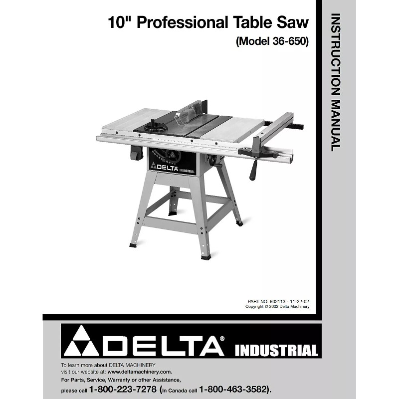 Delta 36-650 10" Table Saw Instructions Manual