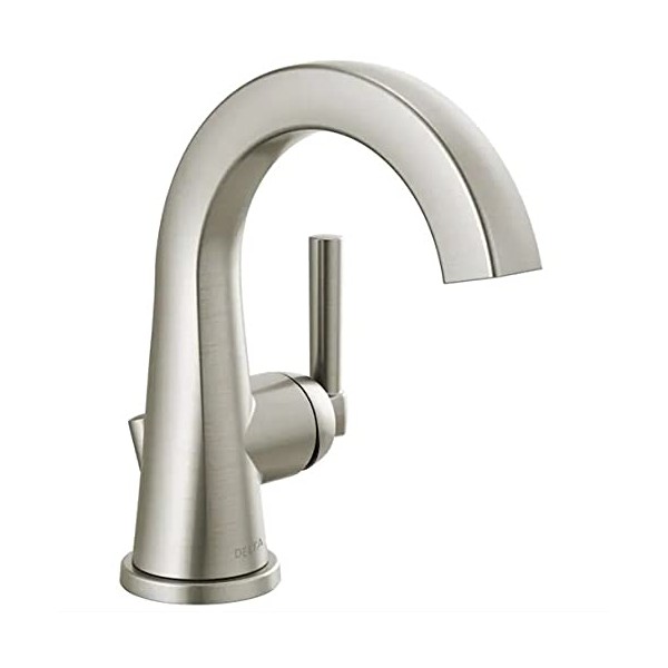 Delta Becker SpotShield Stainless 1-Handle Single Hole WaterSense Bathroom Sink Faucet with Drain and Deck Plate