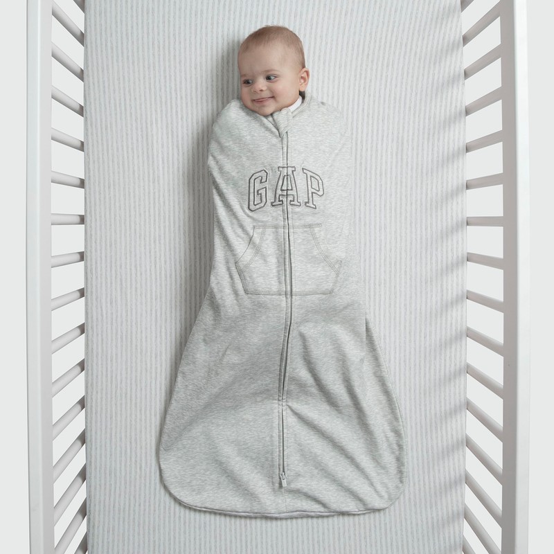 Delta Children Gap babyGap TrueSleep Sleep Sack with Zipper and with Built-in Swaddle | 100% Organic Cotton | GOTS and Oeko-Tex 100 Certified | 2-Way Zipper | Small: 0-6 Months, Grey