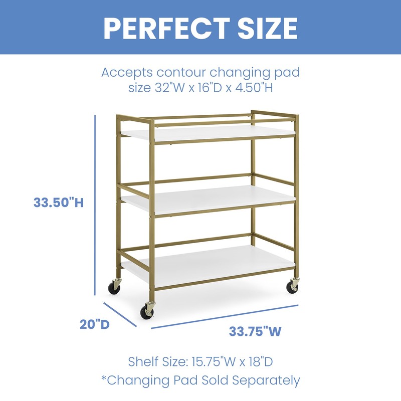 - SIZE: Assembled dimensions: 33.75"W x 18"D x 37.75"H | Shelf Size: 32.25"W x 18"D | Accepts contour changing pad size 32"W x 16"D x 4.50"H (sold separately) | Easy assembly