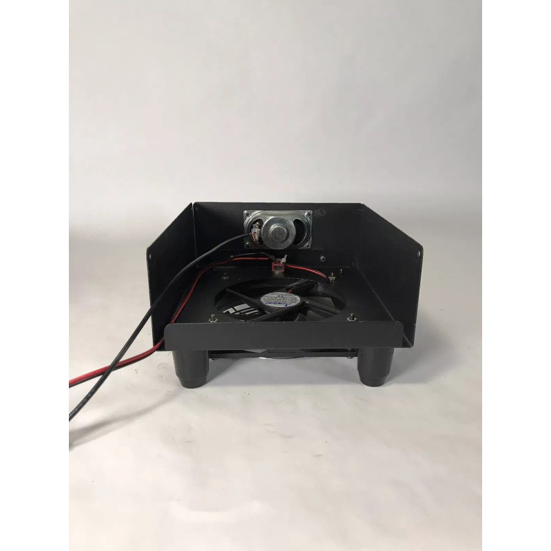 This base stand has 4 rubber grip feet that elevates and stabilizes your radio while a high power COOLING FAN that cools the bottom heat sink of your radio! There is a front facing LOUD Built In External Speaker with mono plug which fixes the design flaw of the radio’s speaker being on the bottom, blocked by the enormous heat sink!! The conveniently located toggle switch allows the user to shut the fan on and off easily. Simply connect to any 12vdc power source and off you go!!!