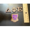 Delta Phi Epsilon Sorority Wood Letters (1") and Mini Crest (1.5") Combo