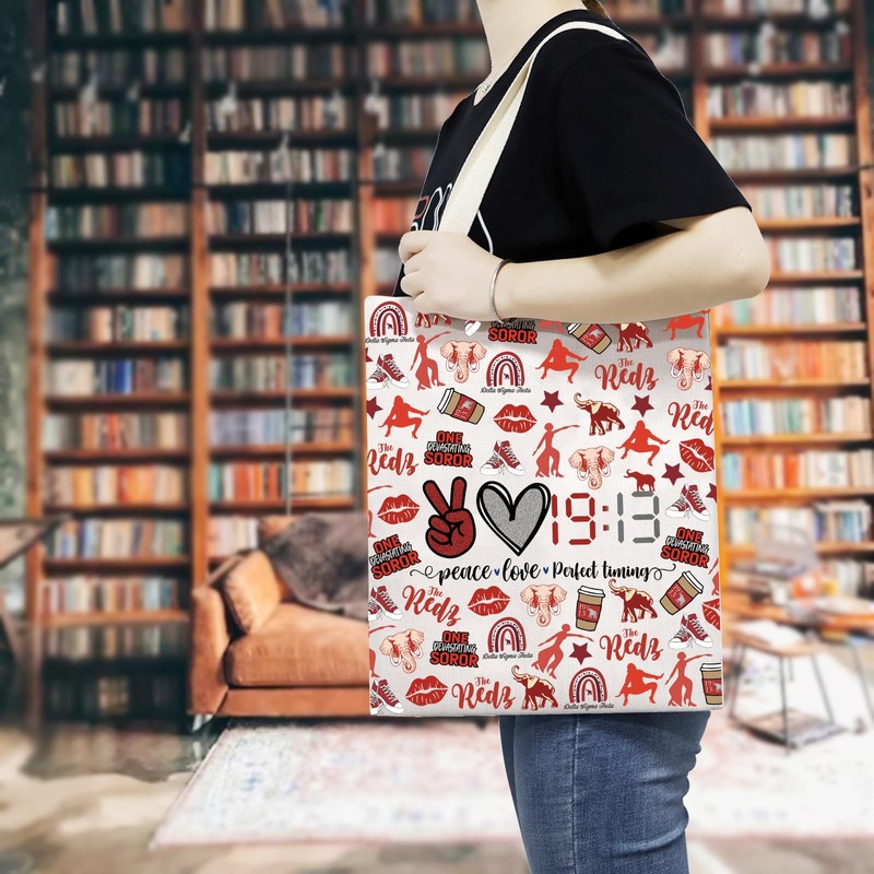 Delta Sorority Greek Gift Sorority Perfect Timing 19:13 Tote Bag for Women DST Gift (19:13 Tote)