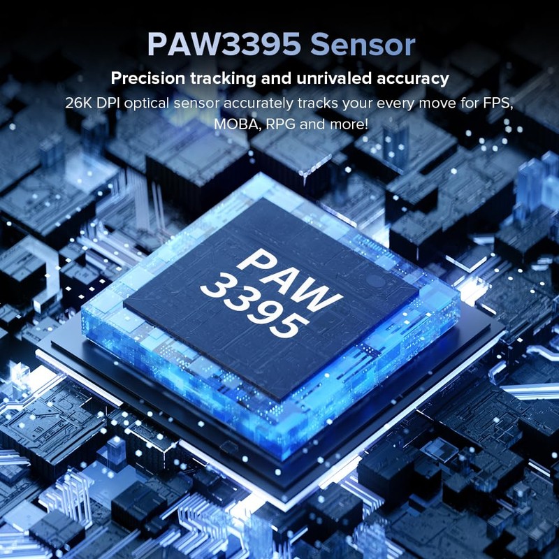 - [PAW3395 Sensor] The PAW3395 sensor, up to 26000 DPI provides high precision and accuracy to accurate tracking of the mouse movements.