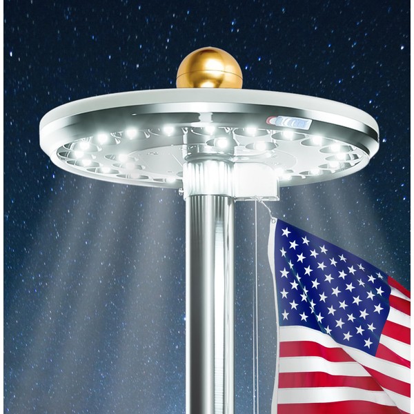 - 20% MORE COVERAGE: Our American flagpole light has a diameter or 9.5” instead of 6.5” for more light coverage. This flagpole also features 26 LEDs to ensure the American flag is prominently visible even in low light conditions 24/7.