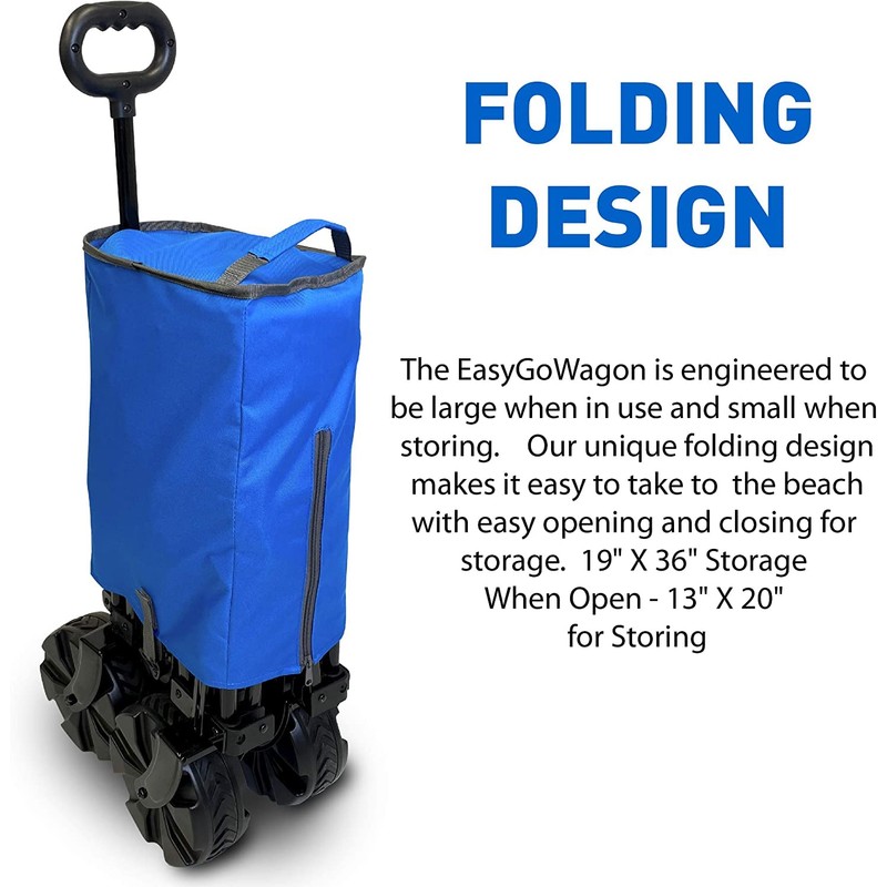 • Folding Design – The Wagon is engineered to be large when in use and small when storing. Our unique folding design makes it easy to take to the beach with easy opening and closing for storage. 19" X 36" Storage When Open - 13" X 20" for Storing