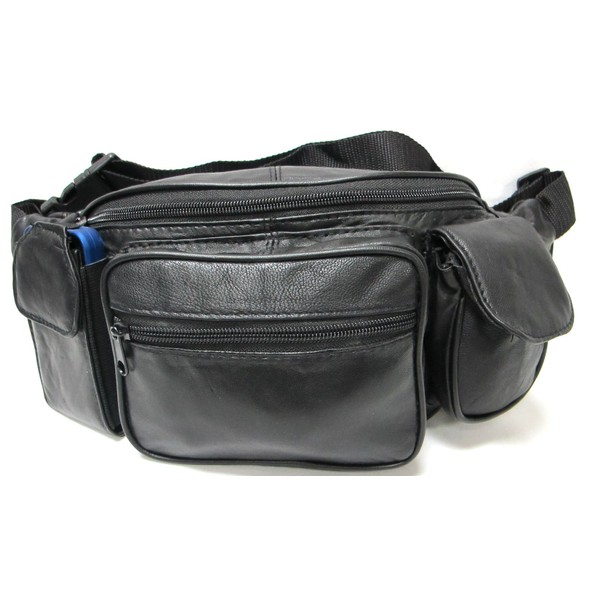 Deluxe Jumbo Size Genuine Leather Waist Pack Soft Light Weight w/Organizer - Black