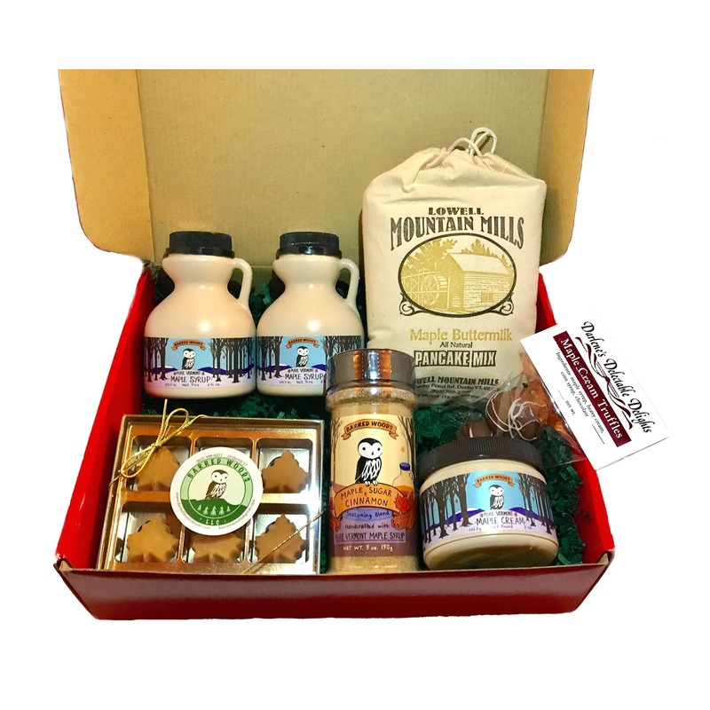 - Also Includes: 8 oz Jar of Delicious Maple Cream, 5 oz Jar of Maple Cinnamon Sugar, Box of Maple Candy and Maple Truffles