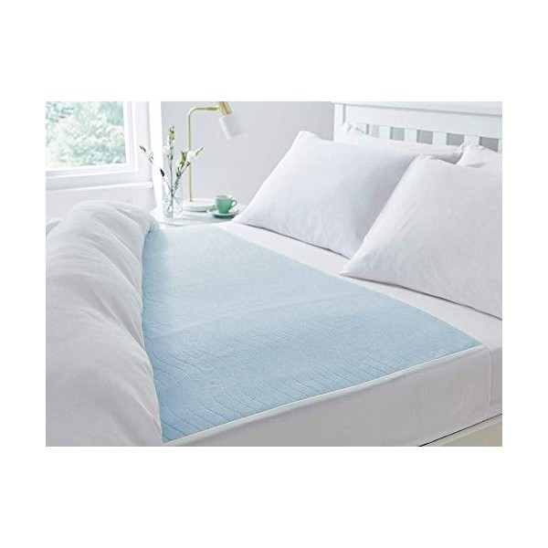 Deluxe Washable Reusable Double Bed Incontinence Pad Protector with Tucks (Blue)
