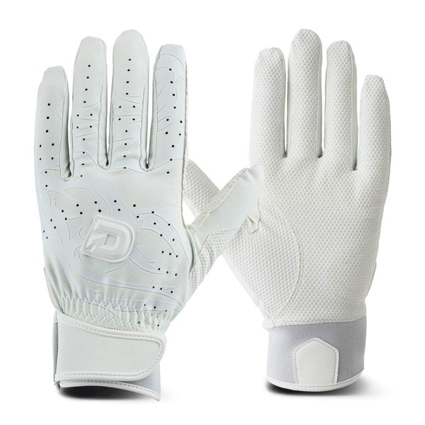 DeMARINI 1201 Baseball Batting Glove Ambidextrous WTABG1201L White Large (High School Baseball Compatible)