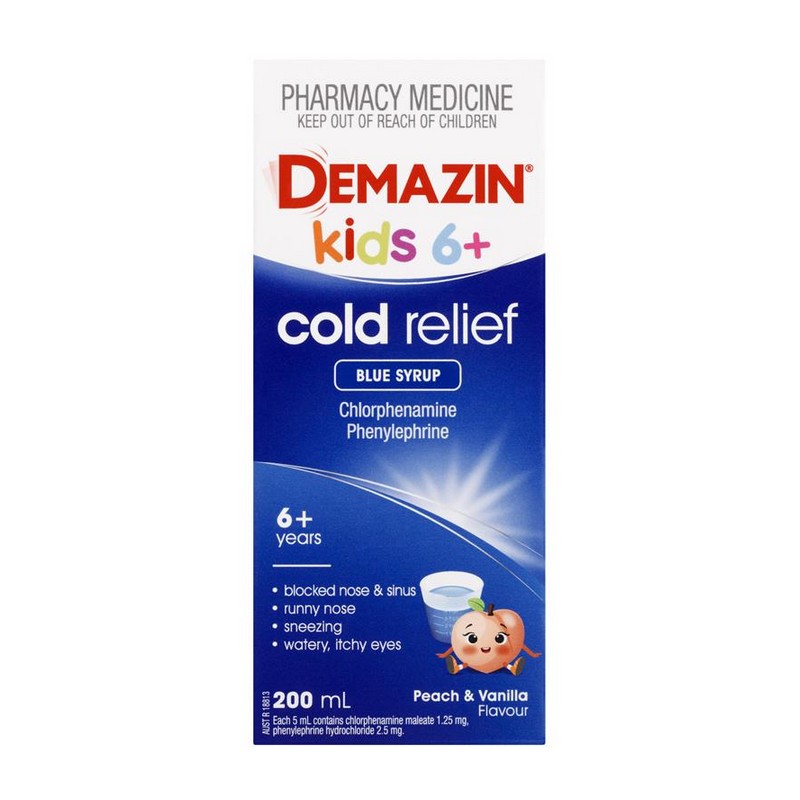 Demazin Kids 6+ Cold Relief Blue Syrup 200mL (Limit ONE per Order)