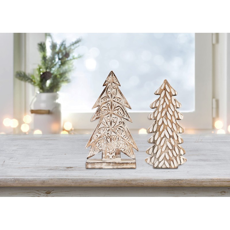 DEMDACO Christmas Tree Whitewashed Mango Wood Christmas Figurine Set of 2