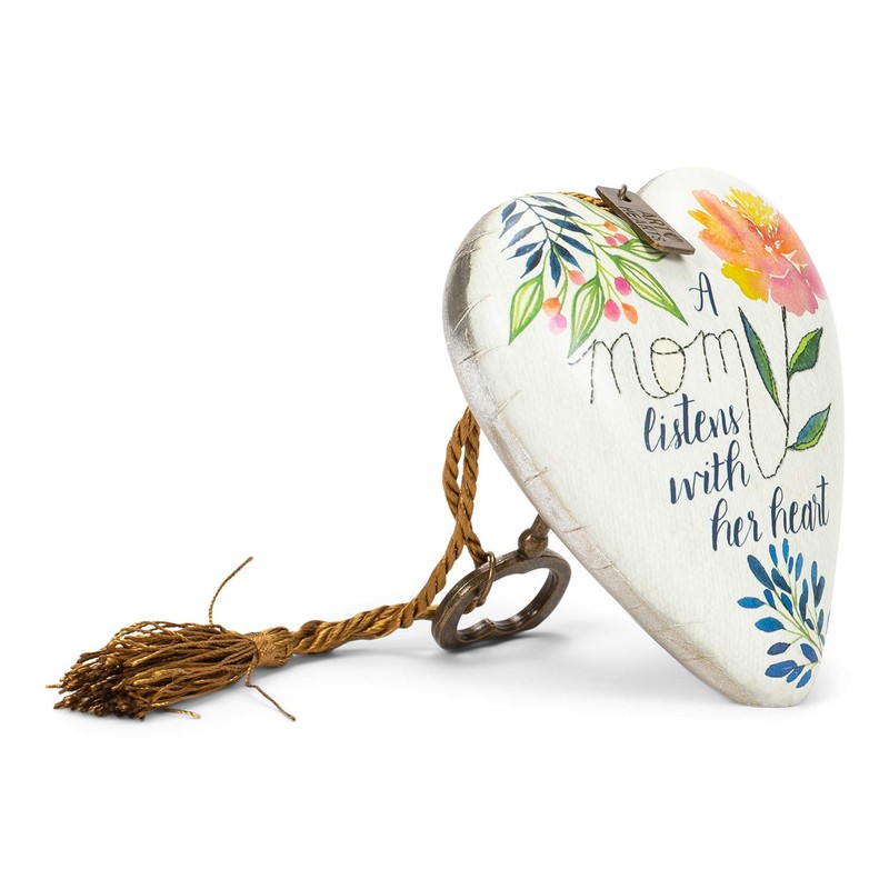 - Heart-shaped keepsake symbolizes the bond of friendship and family through meaningful sentiment and vibrant design; Sentiment reads: A mom listens with her heart
