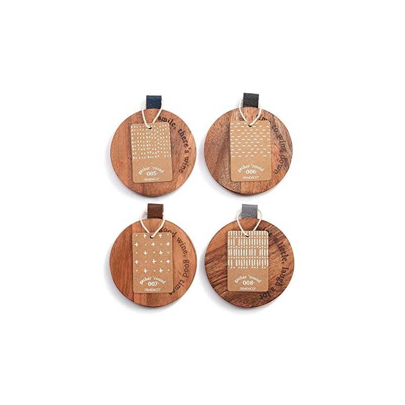DEMDACO Time to Wine Down Good Time Natural Brown Round 4 inch Acaia Wood Coasters Set of 4