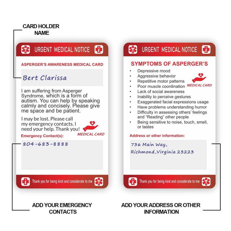 Dementia Medical Card with Writable Panel and Patterned Lanyard Emergency Contact Card