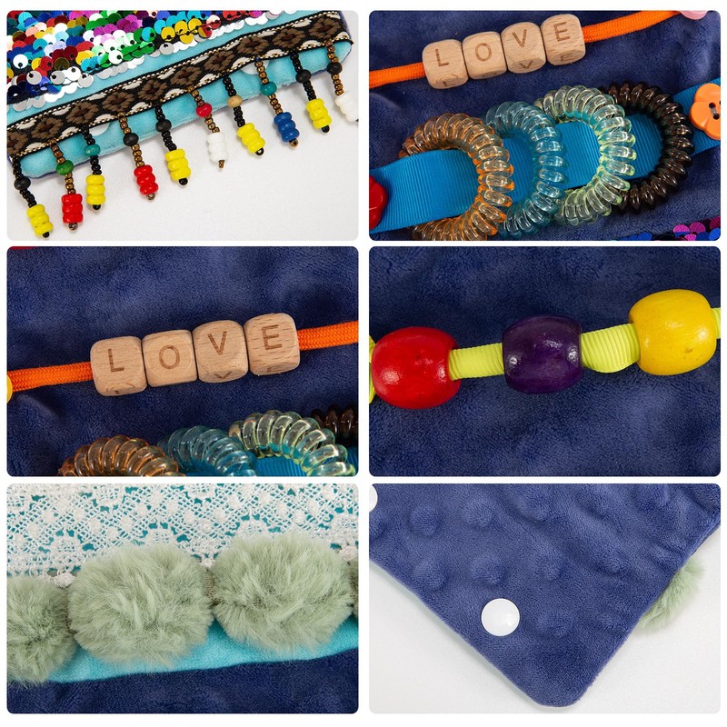 Product Advantages: Its cuffs are very light, different from other thick sensory products and easy to carry; It is also easy to use, directly wrapped around the wrist or arm, and can be easily fixed with a buckle; Fabrics with different textures help create tactile experiences, improve skills, and soothe the mind.