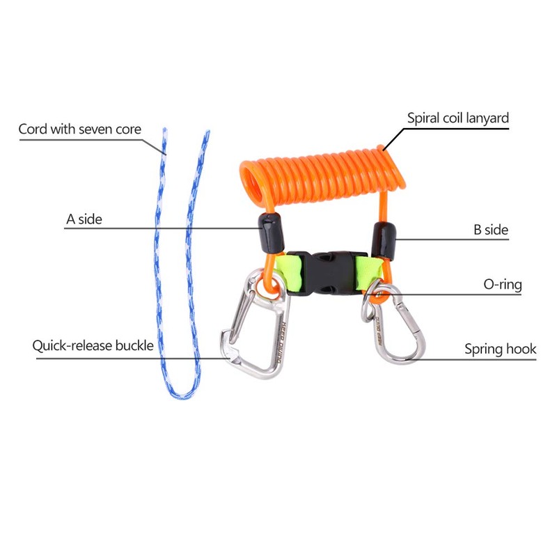 • Anti-lost spring rope: during underwater activities, important elements can be connected to avoid loss. Simple device to ensure you don't lose your camera during a dive. Perfect for connecting your camera or other accessories to your diving equipment.