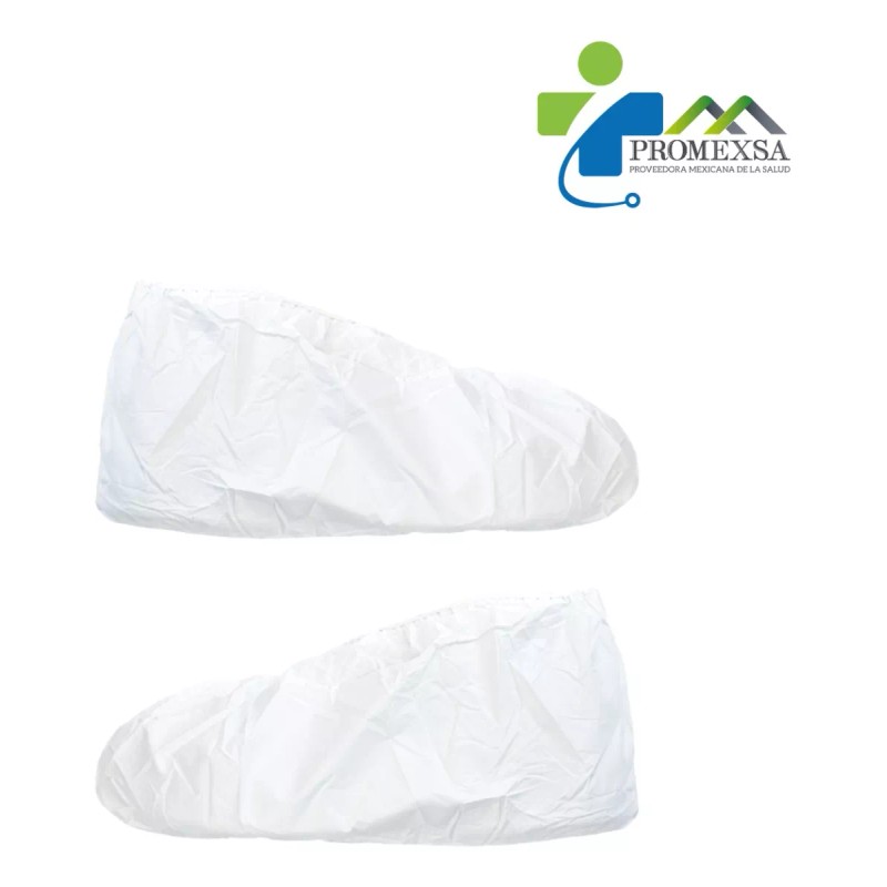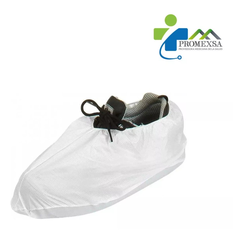 Cubre zapato fabricado 100% de polipropileno color blanco, cuenta con resina antideslizante en la planta del pie para mejorar la tracción, tiene elástico para mejorar la apertura, además de brindar comodidad al colocarse y no se salga de su posición original.