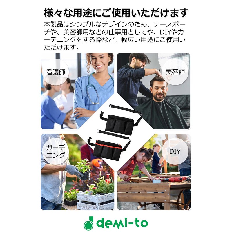 - 4. Can be used for a variety of purposes: This product has a simple design that can be used for a wide range of uses, including nurse pouches, hairdressers and for DIY and gardening. ✔ [30 day manufacturer warranty! ] This product has a 30 days money back guarantee from the date of purchase only from the "demi-to" authorized dealer. Although we carefully inspect each product by Japanese staff, there may be cases of damage or defective during shipping. In that case, we will respond quickly, so please add your order number from our customer support. Also, if you have any questions or problems about the product, please feel free to contact us through our customer support