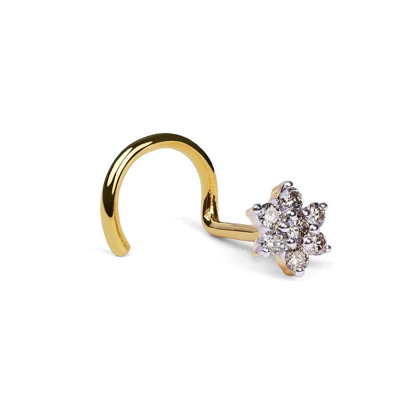 Demira Natural 1.2MM Diamond 14K Gold Flower Design Nose Pin, Lip Labret, and Monroe Ring Stud Screw -Twist Back (WIRE), 0.04cctw, gold, diamond