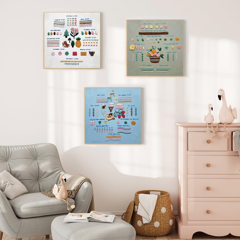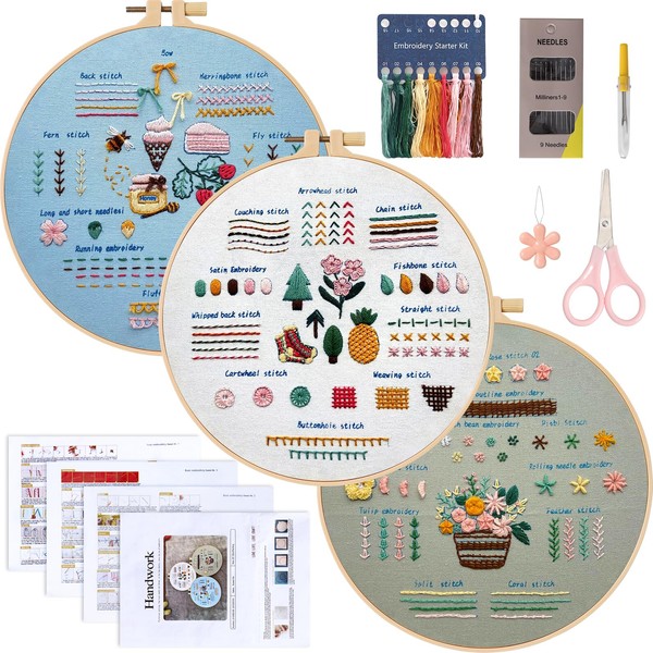 DEMIUKO 3 Sets Embroidery Stitch Set for Adults Beginners Learning