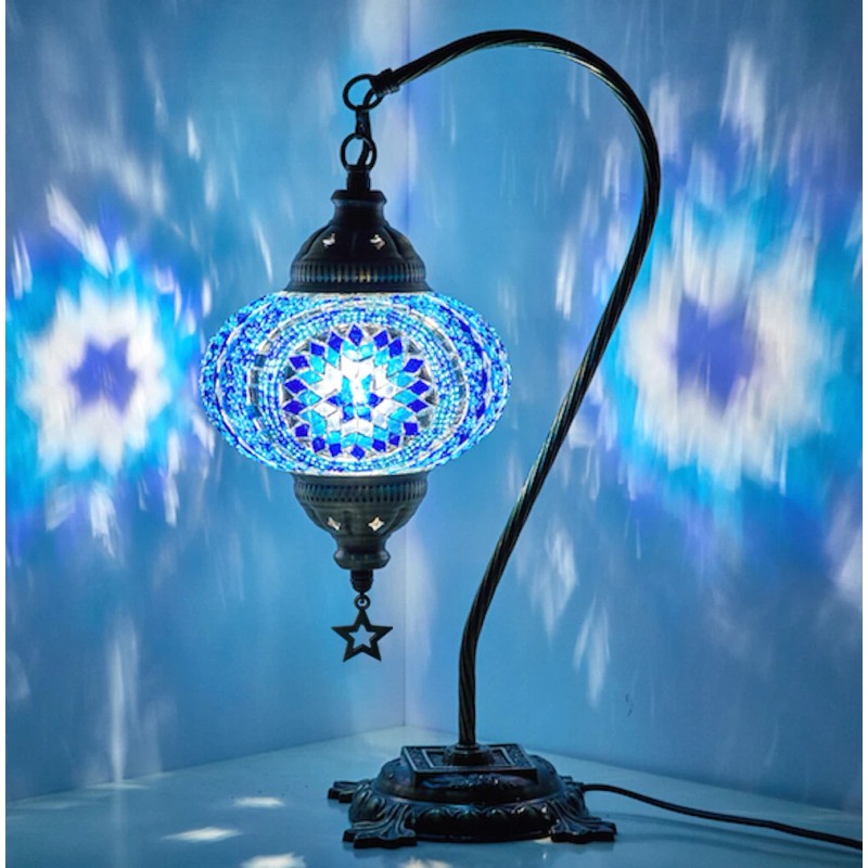 DEMMEX Turkish Moroccan Mosaic Colorful Table Bedside Desk Lamp Light Lampshade Blue