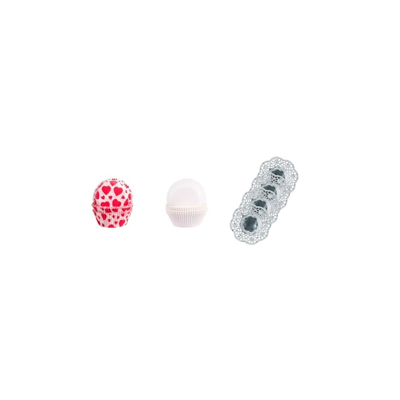 - Contents: heart muffin cases (60 pieces) and white muffin cases (100 pieces)