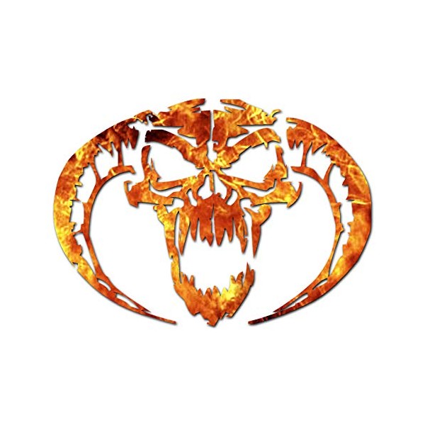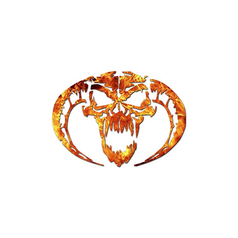 Demon Devil Skull Horns - Vinyl Decal Sticker - 8" x 5.75" - Orange Flames