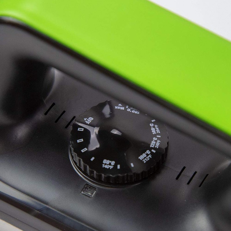 - The Plate measure 6 inches long and just over 3 inches wide. The temp gauge is noted in F and C and will heat up to 356F and weighs a sturdy 1.5lbs.