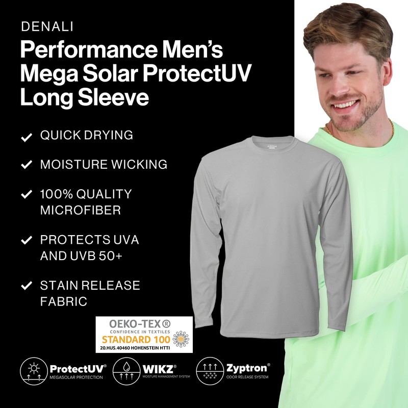 Denali Performance Men's Mega Solar ProtectUV Long Sleeve, Light Grey, Medium