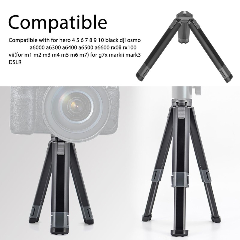 2. Compatible: Camera tripod is 1/4 screw compatible for 4 5 6 7 8 9 10 black osmo pocket a6000 a6300 a6400 a6500 a6600 rx0ii rx100 vii(for m1 m2 m3 m4 m5 m6 m7) for g7x markii mark3 digital SLR cameras.