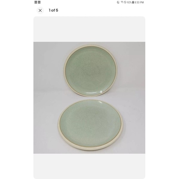 Denby-Langley Energy Cream Exterior Celadon stoneware plates 9" luncheon NWT.