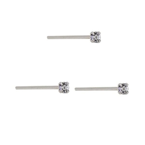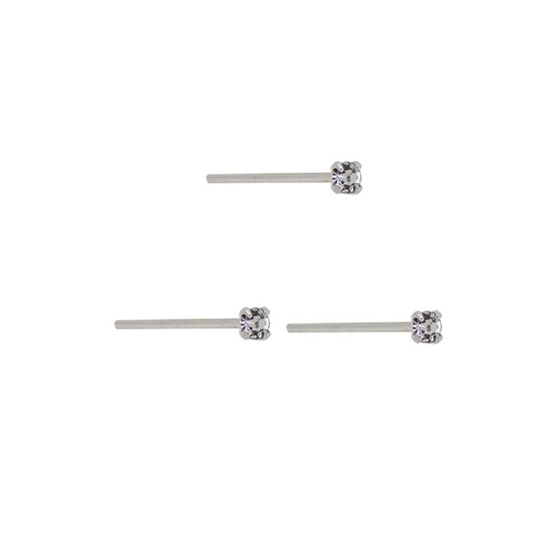 DENI 3 Nose Studs Straight 925 Sterling Silver with Very Small Cubic Zirconia of 1.5 mm Thin with Bar Thickness 0.6 mm Sterling Silver, Sterling Silver