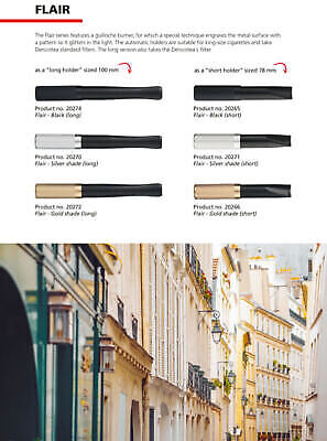 - THE PERFECT DESIGN - The Denicotea Flair Ejector Series Cigarette Holder is the perfect design. It is ergonomic design means it fits comfortably in your hand, and is also the perfect length! It is designed to work with all standard and king size cigarettes. It will not work with slim or extra slim cigarettes.