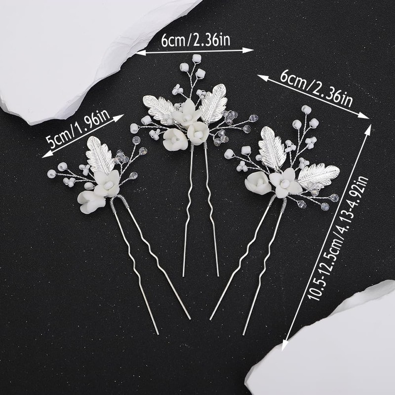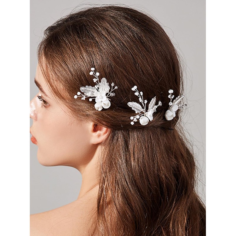 Denifery 3 Pieces Silver Flower Bride Wedding Hair Pins Leaf Bridal Headpiece Bead Bridesmaids Hair Accessories for Women and Girls