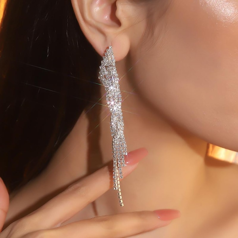 Denifery Fashion Rhinestone Statement Drop Dangle Earrings Wedding Earrings Long Chandelier Earrings Dangling Sparkly Crystal Bridal Bridesmaid for Women Prom Party
