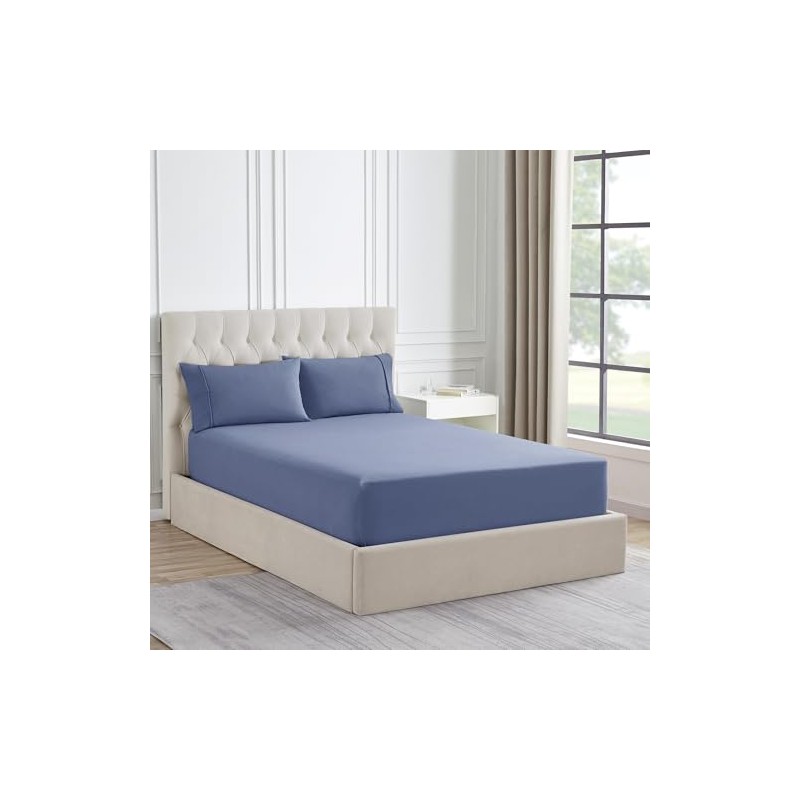 Denim Flannel Fitted Sheet - Full Elastic & Corner Straps - Soft & Breathable