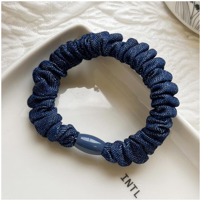 - Women Denim Blue Hair Scrunchies Ponytail Holders