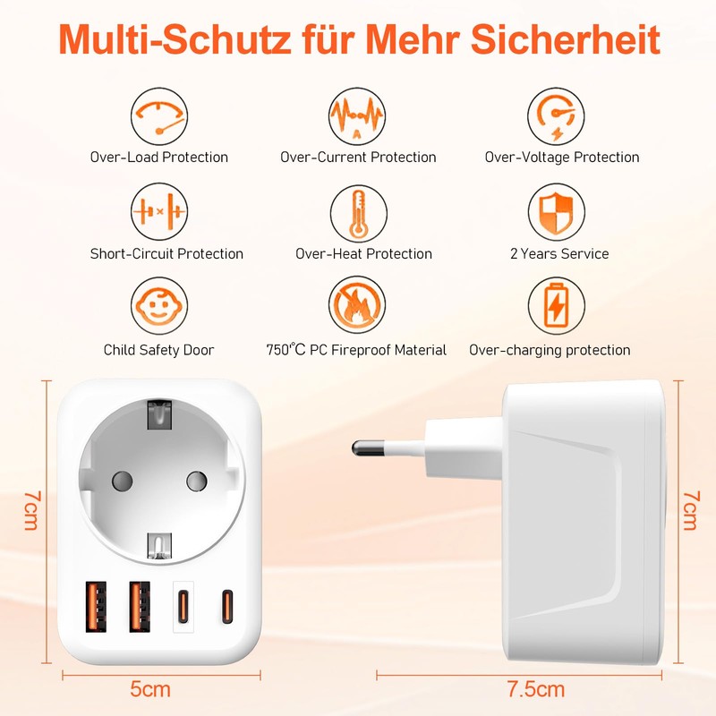 - 🛫【Ausgezeichnete Qualität als Reisebegleiter】Dieser steckdosenadapter Italien besteht aus hochwertigen Komponenten, einer mehrfach isolierten Struktur, einem Kinderschutzventil usw. Mit Überspannungsschutz, Kurzschlussschutz, Temperaturkontrolle, sodass Sie ihn bedenkenlos verwenden können. Kompakt und tragbar, mit den Maßen 7.5 x 7 x 5 cm.