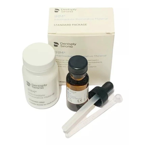 El IRM es un cemento provisional que está hecho a base de polímero reforzado de oxido de zinc eugenol. El IRM está indicado para restauraciones temporales con una duración no mayor de un año. De igual modo, el IRM también puede usarse como base en restauraciones definitivas con materiales que no contengan resina.