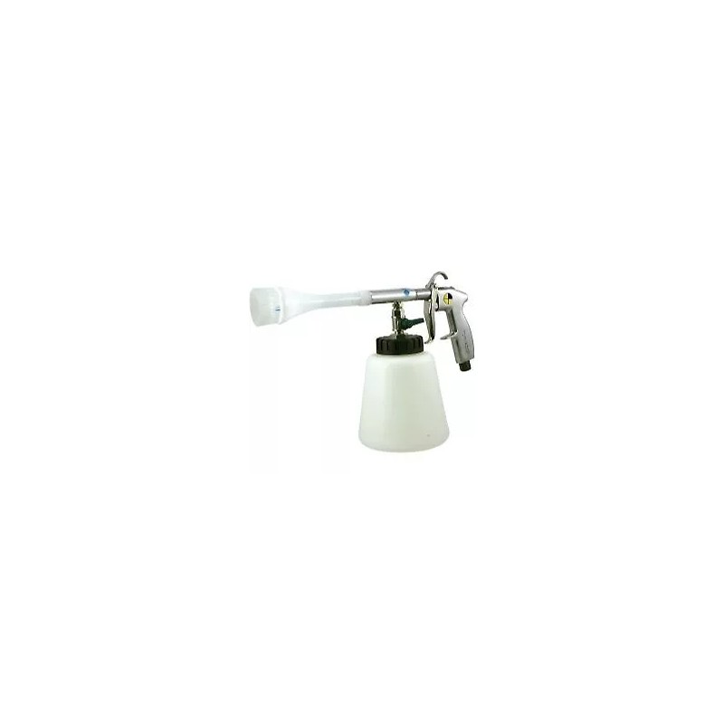 Connects to an air hose. Use in well ventilated areas as cleaner will be vaporized. Use of non-toxic cleanser recommended. Use appropriate cleanser for situation.